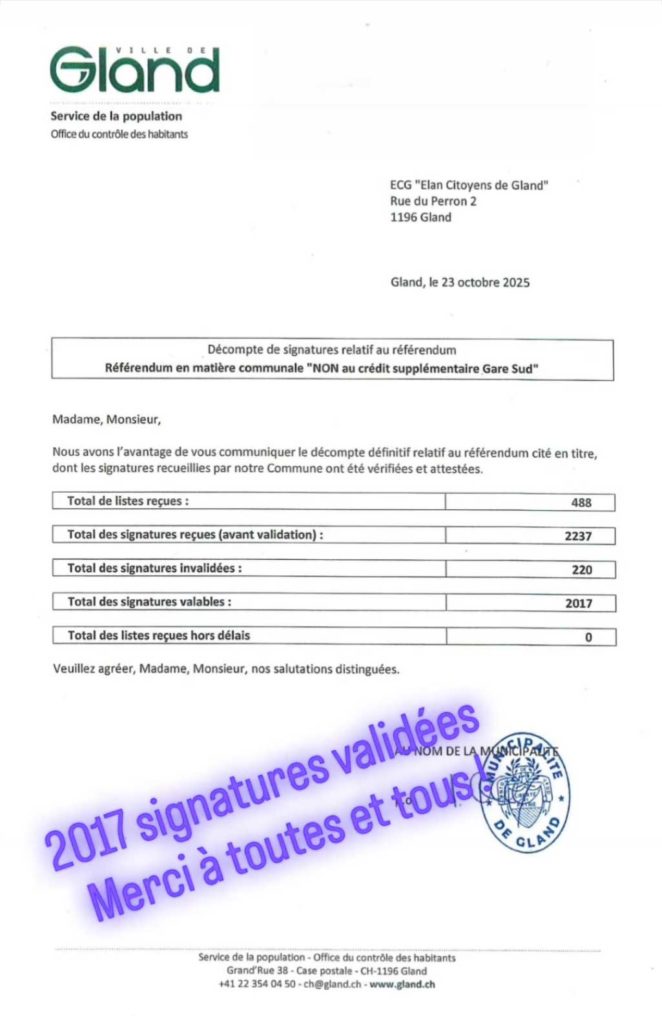 - 2’017 signatures valables ont été certifiées par la Municipalité